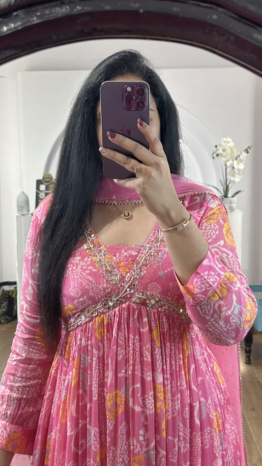 Pink Floral Alia Cut Suit Set